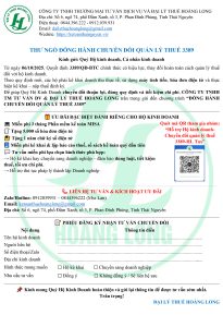 CÔNG TY TNHH TM TƯ VẤN DV & ĐẠI LÝ THUẾ HOÀNG LONG trân trọng gửi đến chương trình “ĐỒNG HÀNH CHUYỂN ĐỔI QUẢN LÝ THUẾ 3389”